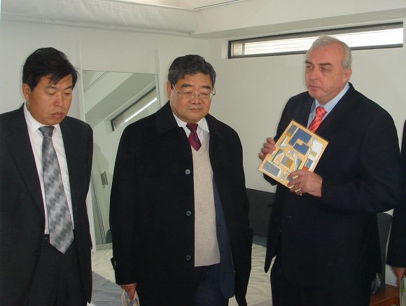 我校与西班牙马德里理工大学自2005年8月开始在协议框架下双方开展了一系列的卓有成效的交流活动。这是焦书记和尤赛达校长(左图左)在协议签订以来的第二次见面,而马德里理工大学的负责国际交流的校长助理安赫教授(Angel Alvarez,右图左)在两年中多次访问我校,早已成为我校的老朋友。