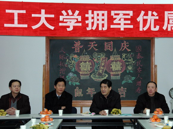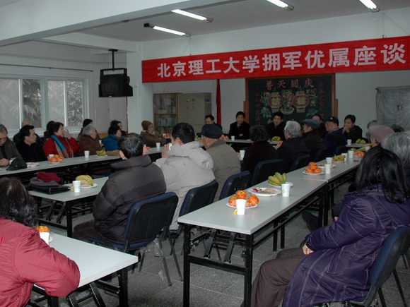 我校于2008年1月18日上午九时在居委会会议室召开了拥军优属座谈会。出席会议的领导有副校长赵显利、学生工作部部长刘明奇、居委会主任韩棋、党办副主任张瑜、校办副主任金军,以及部分校军烈属。