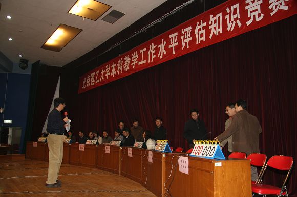 为迎接国家教育部本科教学工作水平评估,按照本科教学工作水平评估的有关要求和师德师风建设的有关规定,为促进全校教职员工深入开展有关知识的学习,校工会、教务处于11月7日在中心教学楼一层报告厅举办了“德赢AC米兰中国官方网站本科教学工作水平评估及师德师风建设知识竞赛”活动。全校共18个代表队、近100名队员参加了比赛。参加本次知识竞赛活动的还有各学院和部门的领导、教职工代表300余人。