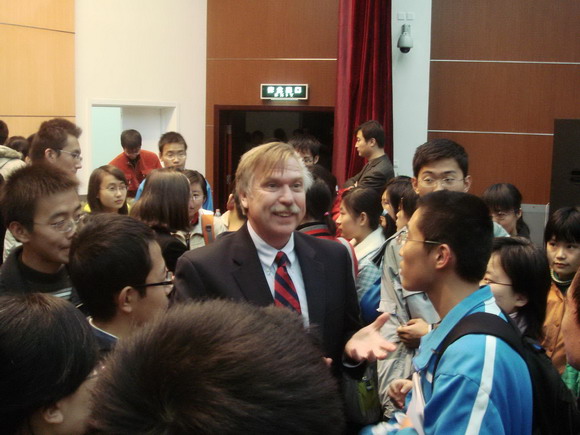 11月19日下午4点,美国马凯大学教务长Dr. Madeline Wake和商务管理学院金融系教授,应用投资管理项目主任Dr. David S. Krause和国际项目部主任Terence. W. Miller作为第四期“嘉言堂”主讲嘉宾在良乡校区报告厅为同学们介绍了马凯大学及美国高等教育的一些基本情况,德赢AC米兰中国官方网站副校长李和章、国际交流合作处副处长汪滢、学生办公室副主任邹锐和300多名07级学生参加了报告会。