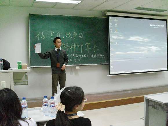 12月7日晚七点,由研祥集团战略研究院和机械与车辆工程学院共同举办的“信息化战争&特种计算机”报告会在我校研究生楼104举行。