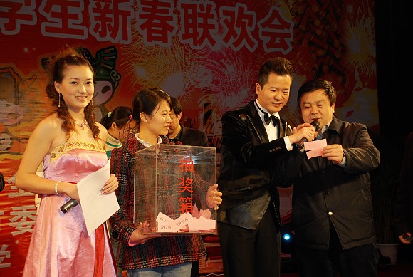 联欢会由中央电视台张政、朱迅、我校校友张斌、我校学生聂晓愚共同主持。