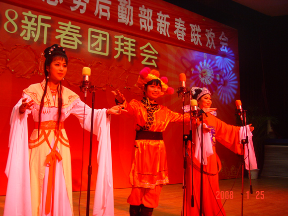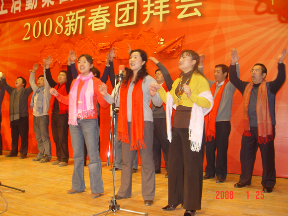 残雪犹挂昨夜松,京工却现不寒冬。共聚齐送金猪去,和谐欢庆迎玉鼠。后勤集团总务后勤部一年一度的新春联欢会于2008年1月25日下午三时半,在中心教学楼一层报告厅隆重召开,整台晚会节目精彩纷呈,四位主持人妙语连珠,台上台下欢呼雀跃,所有参与者都融入一片欢乐和谐的气氛中。