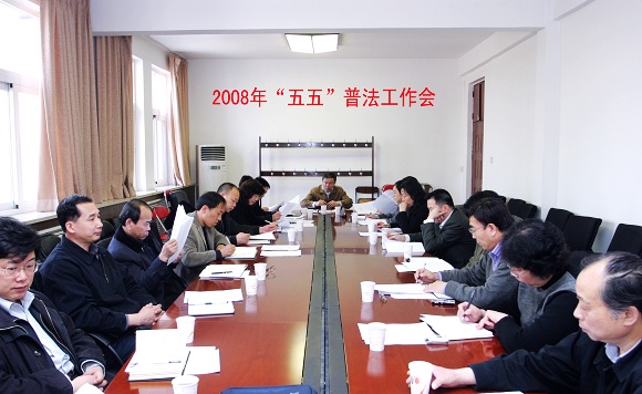 2008年3月5日,我校2008年“五五”普法工作会议在主楼四层会议室召开。校党委副书记赵平出席会议,参加会议的有党办、校办、宣传部、法律事务室、科技处、纪监室、学工部、研工部、团委、保卫部、保密部、人事处、财务处、实设处、工会、国资处、产业办、居管会、人文学院的负责人。