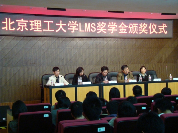 首先,LMS奖学金评审委员会秘书长、我校机械与车辆工程学院分党委副书记、副院长郝洪涛老师宣读了《关于表彰2008年LMS奖学金获奖班级的决定》。随后依次对获奖班级进行了颁奖。