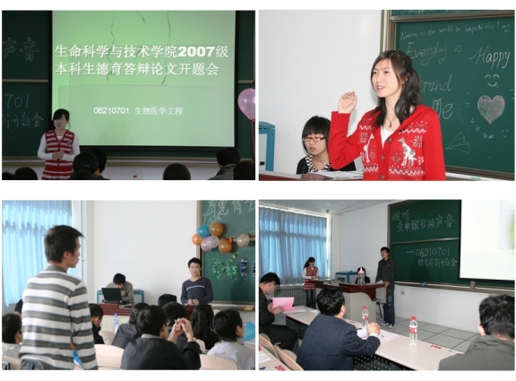 3月23日上午,生命科学与技术学院2007级本科生德育论文开题答辩会在良乡校区顺利展开,生命学院2007级四个班104名学生,按照学校要求,全部开展了德育论文开题。校党委副书记、副校长杨宾教授、保密处张振华处长,生命学院李兰东书记、邓玉林院长作为与这四个班级联系的校院领导,也参加了各自班级的开题报告会。此外,学生工作处副处长、良乡校区学生办主任郭彦懿、副主任邹锐、生命学院庞思平副院长、周连景副书记、副院长和班主任、辅导员也一同参加了本次开题。