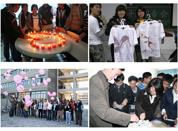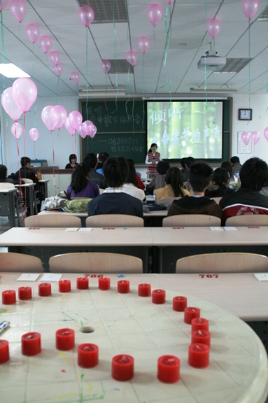经过各班的精心策划和准备,各班的开题报告会可谓精彩纷呈,充分展现了班级每一位同学的思想状态和对四年大学生活的憧憬与规划。各班级在整个开题报告会中,每一位同学都制作PPT,配合自己的心语心声,与在场的老师同学分享对大学生活的思考与感悟,有的班级通过电话采访了每一位同学的家长,此时此刻家长的声声寄语,感动着每位同学的心灵,晶莹的泪花闪动眼眶之中,有的班级同学们互赠亲手描绘的创意文化衫,漂亮的图案代表了同学们多姿多彩的心情;还有的班级为自己定做了“班级”蛋糕,共同在烛光中许下自己的心愿。