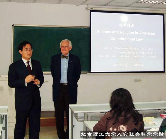 2008年4月10日,应德赢AC米兰中国官方网站人文学院邀请,来自美国科罗拉多大学法学院的理查德.柯林斯(Richard B.Collins)教授,为理工大同学带来了两场精彩的法学讲座。讲座由人文学院法律系于兆波副教授主持。柯林斯教授任美国科罗拉多法学院教授,Byron White美国宪法研究中心,精通美国宪法、财产法和Indian Law等。现任北京大学、武汉大学访问学者。