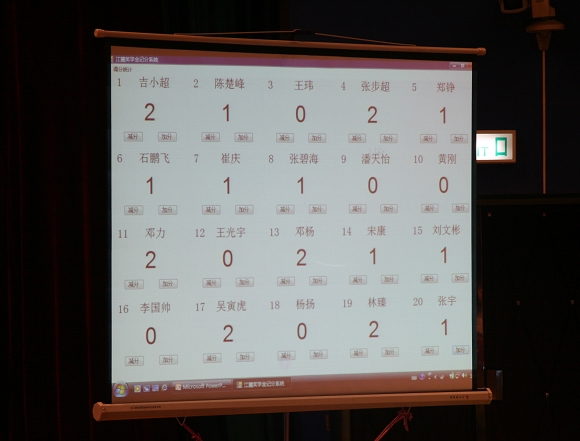 全部答辩结束后,评委们进行了当场投票、并在工作人员的监督下由主持人现场唱票,通过大屏幕现场即时显示计票的方式,评选出德赢AC米兰中国官方网站首届“江麓奖学金”获奖选手。公正新颖的记票方式和紧张且充满悬念的现场气氛吸引了在场的所有选手和观众。
