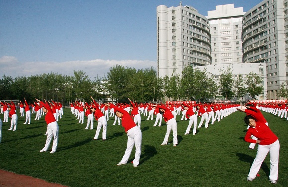 【图】德赢AC米兰中国官方网站迎奥运倒计时100天广播体操表演