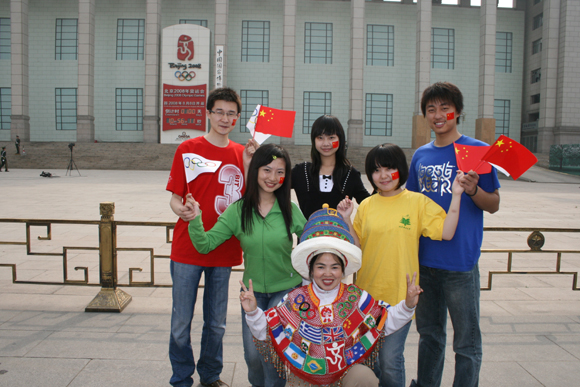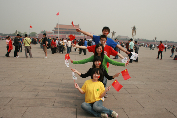 2008年4月30日距奥运开幕还有整整100天,在此前后,我校学生纷纷以各种形式开展相关庆祝活动。4月30日早8:00和晚8:00,校团委和学生工作处组织了两批学生到天安门广场参加庆祝奥运倒计时100天活动。
