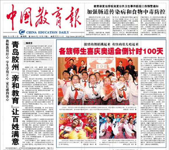 2008年5月1日《中国教育报》第1版《各族师生举行丰富活动 喜庆奥运会倒计时100天》的文章中对我校学生参与活动的情况进行了报道。