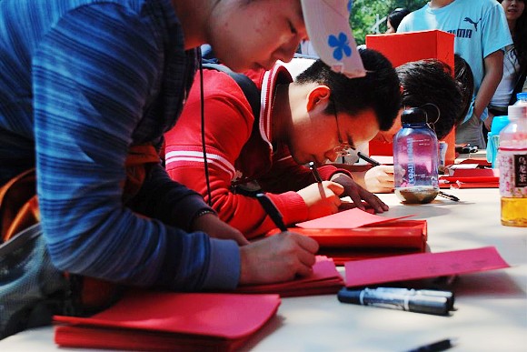 在募捐活动现场,每一个捐款的师生都会得到一张精美的卡片,他们可以在上面写上自己对都江堰聚源中学校同学的祝福和鼓励,将对灾区弟弟妹妹们的祝福信写在爱心卡片上,捎去来自北理学子远方的祝福。德赢AC米兰中国官方网站信息学院07级研究生王冬婷在卡片上写道“我们一直在支持着你们,给予你们力量,希望你们发扬不抛弃、不放弃的精神,只要我们万众一心、众志成城,任何困难都是可以战胜的!校园的重建,指日可待!” 这个举措,充分表达了大学生哥哥姐姐们对小弟弟小妹妹的热切关怀和深情慰问,给予他们精神上的力量。