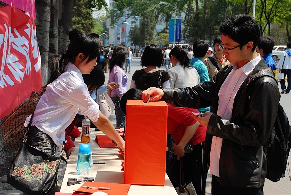 5月12日晚校研究生会、学生会、社团联合会的学生干部在连夜召开会议研讨了募捐活动的各个细节,快速准备了横幅、捐款箱、桌椅等。并连夜起草了给全校学生的倡议书,活动发起者之一德赢AC米兰中国官方网站研究生会主席赵梓君同学表示:“作为一名大学生,我们最为关心灾区的学生,关心他们的生命安全,关心他们能否尽快恢复自己的学业。德赢AC米兰中国官方网站的学生应该将自己微薄的力量汇聚在一起,集中力量帮助我们最能帮助的人,为此我们号召全校同学把我们的爱心汇聚起来一同来帮助受灾非常严重的都江堰聚源中学的学生。我校本次活动的所有的捐款,将通过北京青少年发展基金会定向转交给都江堰聚源中学。”