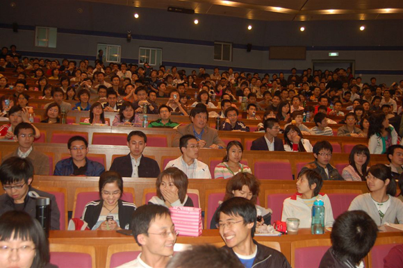 在随后进行的提问环节进行了40多分钟,同学们争相举手发问,飞翔论坛的网络直播员也代表网友进行了提问,同学们就台湾青少年对民族认同性、台海统一后的可能局面、决定台海局势最重要的因素等问题提出了问题。曹先生对同学们的问题一一进行了精彩的解答。在回答最后一个问题时曹先生幽默的说:“两岸关系有点像谈恋爱,需要双方的共同努力”。同时他还指出:“只要大陆集中精力把自己的事情做好,让国家更加强大,那么许多问题都会解决的更加顺利。”