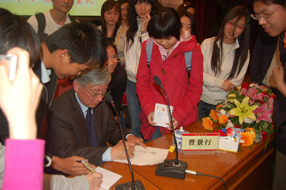 整场讲座结束后,同学们纷纷请曹先生签名。