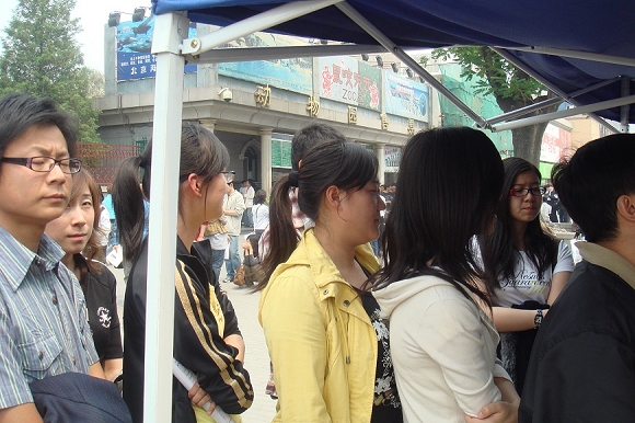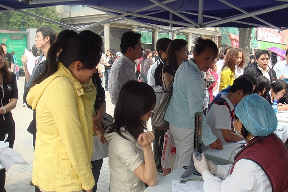 同学们到达献血站时,献血站现场已经排起了长龙,经过一个上午漫长的等待,至今天中午一点钟,他们才排到了采血站开始献血,其中我院王丛溪同学一次性献血400cc。由于体质及血型匹配原因,另外三名同学未能如愿献血,但她们表示仍将以其他方式尽一切可能帮助灾区同胞。献血完毕后,几位同学没有吃午饭就匆匆的赶回学校上课。经过了解,此次活动属于该班同学的自发行为,本班其他同学由于时间及身体原因虽未一同前往,但均表示将陆续前往献血,为灾区做贡献。