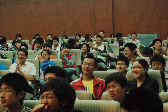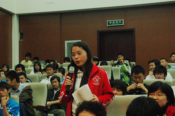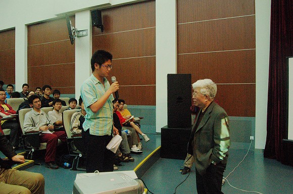 在交流互动环节中,周院士走近学生中间用一个小时左右的时间逐一回答了同学们提出的有关光电专业知识、制度创新、政治文化环境与科技创新的相互影响等问题。