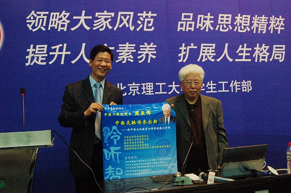 2008年5月14日“聆听智慧”名家论坛第27期在良乡校区综合教学楼学术报告厅举行。光学专家中国工程院院士周立伟应邀为我校师生作了题为“中西交融传承出新——谈中西文化教育与科学创造之异同”的演讲。