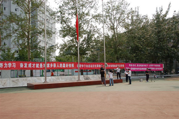 北京电视台5月19日现场直播了我校师生集体为灾区遇难同胞默哀的活动。
