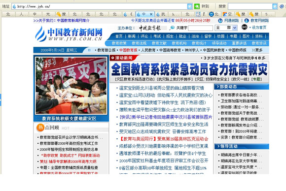 中国教育报5月14日 第2版《抗灾路上我们手挽手》(图文)http://www.jyb.com.cn/cm/jycm/beijing/zgjyb/2b/t20080514_161677.htm