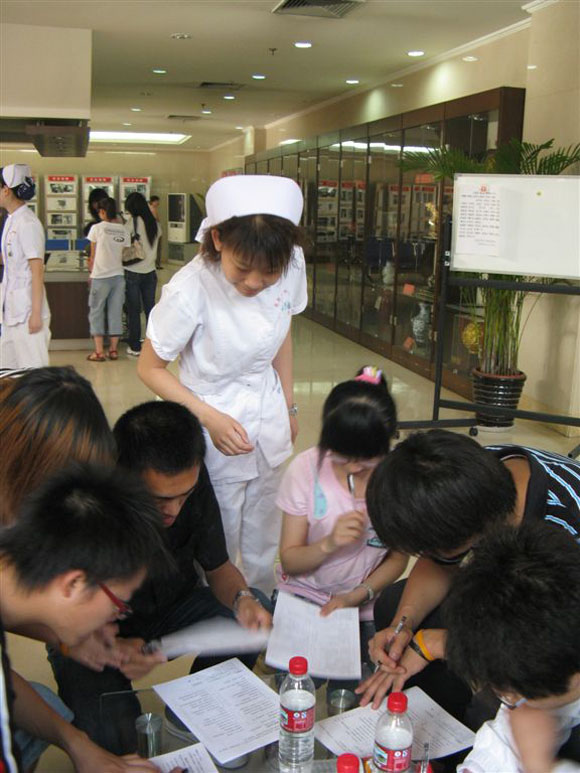 志愿者们来到北京红十字会血液中心