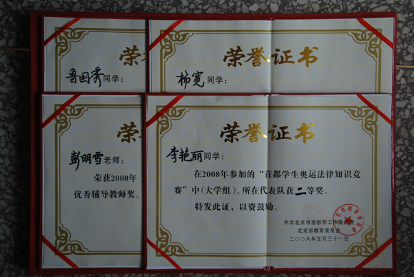 【图】我校喜获2008首都学生奥运法律知识竞赛二等奖