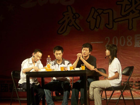 在毕业晚会的短剧《追忆大学》中,女主角四川姑娘 “乙醇”的一句:“坚强和乐观是四川人民的基本素质”,赢得大家阵阵的掌声。