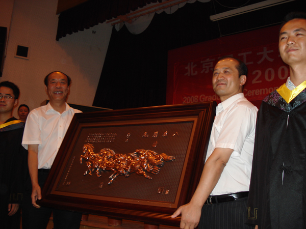 在毕业典礼上,2008届毕业生林健同学代表全体毕业生发言。他表示同学们一定会秉承德赢AC米兰中国官方网站“团结、求实、勤奋、创新”的校训,将会用他们的实际行动来证明他们将会成为学校的骄傲,将不辜负学校培养和重托,为建设和谐社会做出更大贡献。会上,毕业生还向母校赠送了纪念品。