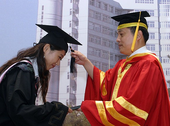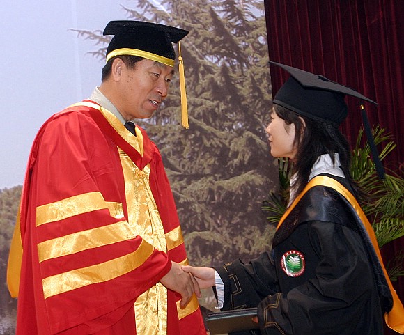 在学位授予仪式上,当各学院毕业生代表走上主席台时,校党委书记郭大成教授、为毕业生代表一一授予学士学位,颁发了学位证书、毕业证书。