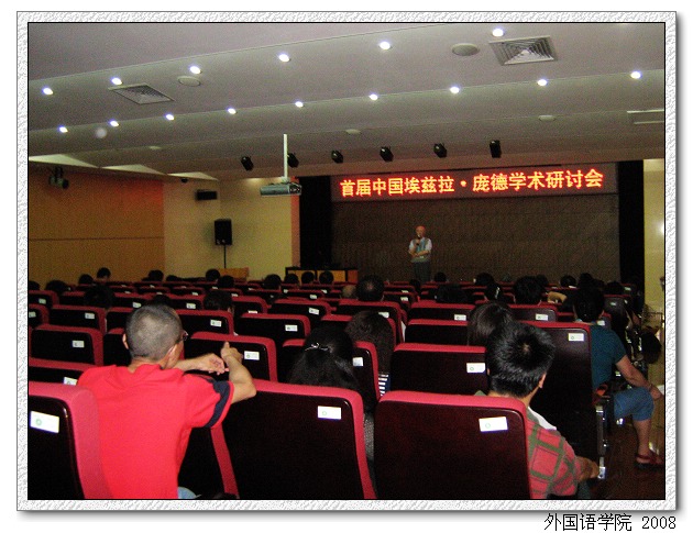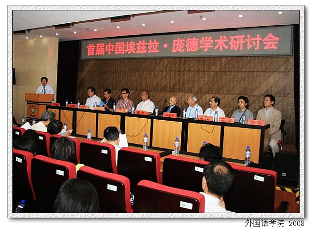 6月21日—23日,首届中国埃兹拉•庞德学术研讨会在我校图书馆报告厅召开。这次大会由德赢AC米兰中国官方网站外国语学院、北京外国语大学英语学院和中国人民大学外国语学院联袂主办,来自国内外30多所高校和研究机构的代表出席了研讨会,其中有著名的专家学者中国作家协会屠岸教授、北京大学许渊冲教授、中国社会科学院江枫教授、四川大学赵毅衡教授、新奥尔良大学钱兆明教授、美国关岛大学常耀信教授等。