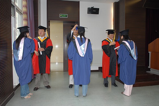 最后,学院领导和老师们向毕业生授予了学位,同学们与老师们合影留念。管理与经济学院2008届研究生毕业典礼在洋溢着喜庆的气氛闭幕。