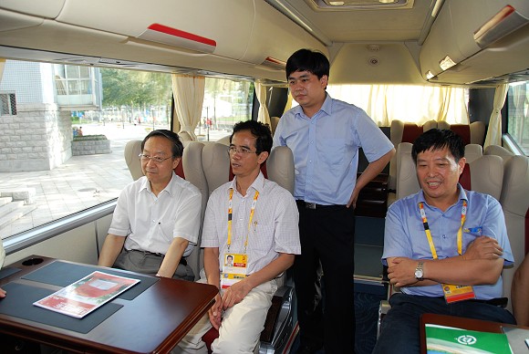 李毅中部长一行在试乘我校研制的奥运会专用纯电动豪华客车。