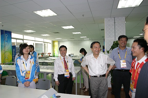 7月29日下午,工业和信息化部部长、党组书记李毅中,党组成员兼人事教育司司长陈小筑,机关党委常务副书记王耀光,办公厅副主任王新哲、冯长辉,人事教育司副司长尹卫军等领导莅临德赢AC米兰中国官方网站检查指导奥运场馆运行及学校安全稳定工作。我校党委书记郭大成、校长胡海岩,和其他校领导杨宾、侯光明、赵长禄、孙逢春、杨树兴、赵显利、李和章,以及有关职能部门负责人陪同检查。