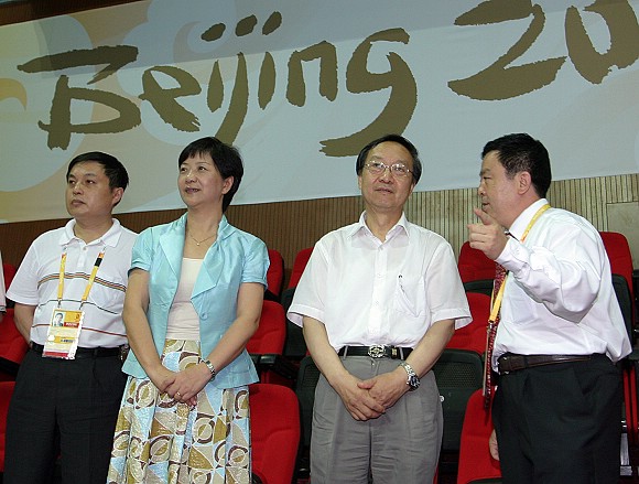 李毅中部长亲切慰问奥运场馆志愿者。