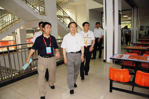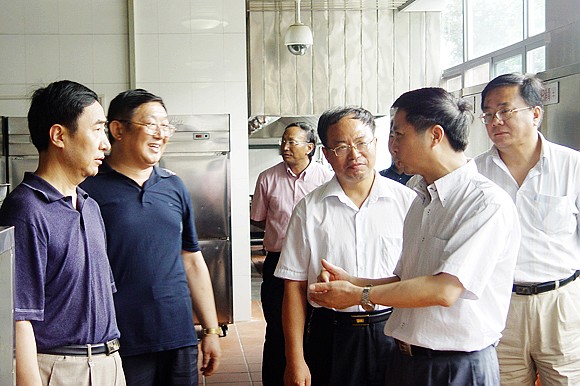 各级领导对我们的工作也十分关注和关心。7月29日,工业和信息化部部长、党组书记李毅中一行来到学校视察,特别到食堂来检查指导工作。