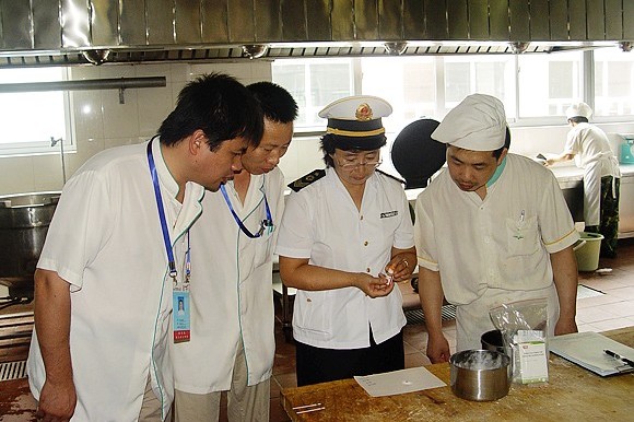 海淀卫生防疫站派到我校负责食品安全保障的卫生监督员是内蒙古自治区赤峰市卫生监督所的夏庆武同志,她坚持每天走进食堂,从食品原料采购索证、质量验收、快速检测、烹饪环节、饭菜售卖、食品留样、餐具消毒、环境卫生和从业人员个人卫生及健康状况、食堂自查等十个关键环节上严格把关,从源头上保证了食品安全。卫生监督员现场监测主食厨房使用的食用油脂、食盐,食堂每天从早上6点至晚上12点为就餐者提供早、中、晚、夜宵共四餐。中、晚餐副食达到8个品种,主食花样不少于5个品种。7月18日至8月12日,奥运食堂共接待就餐者近五万人次。丰富的食品,可口的饭菜,整洁舒适的就餐环境,得到了就餐者的好评。