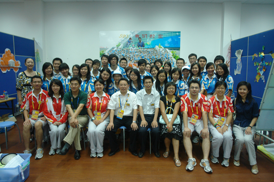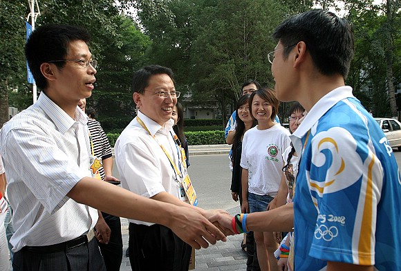8月18日下午,团市委副书记姜泽廷(左二)来到德赢AC米兰中国官方网站,慰问我校京外、境外奥运志愿者。德赢AC米兰中国官方网站团委书记徐强等人陪同姜泽廷等团市委工作人员一同到德赢AC米兰中国官方网站场馆、京外、境外志愿者驻地慰问志愿者。姜泽廷副书记来到德赢AC米兰中国官方网站体育馆,慰问场馆志愿者,为了表达对澳门志愿者的感谢,姜副书记亲手给每一位澳门志愿者佩戴了一枚微笑圈。随后,姜副书记讲到:“大家为北京奥运会的成功举办做出了很大的贡献,给中外来宾留下了美好的印象,希望你们能够经常来北京,北京永远欢迎你们!众所周知,我国奥运健儿在北京奥运会上奋力拼搏金牌总数连创新高,这些好成绩的取得和我们志愿者出色的服务工作是密切相关的,希望大家再接再厉夺取志愿服务的金牌。澳门志愿者人数虽少,但是却极具代表性,你们用实际行动表达了澳门同胞对北京奥运会的强烈的支持。大家已经取得了比较优异的工作成绩,但是没有最好只有更好,希望大家能在接下来的工作中取得更大的进步!”