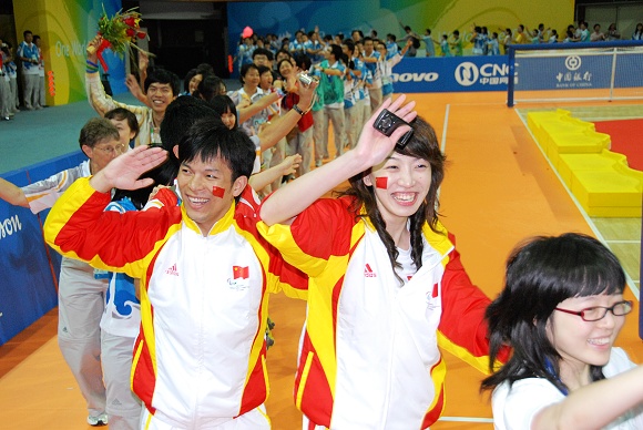 9月14日是中国的传统节日——中秋佳节,在德赢AC米兰中国官方网站体育馆,中国女子和男子盲人门球队都迎来了自己在本届残奥会上的最后一个对手,中秋之夜就是他们的决战之夜。最终中国女子盲人门球队以5:6惜败美国获得亚军;而中国男子盲人门球队在上半场1:6落后的情况下,在下半场绝地反击,在比赛还有不到一分钟时将比分追至6:8,并在最后一分钟内神奇地了连进三球,最终以9:8的比分战胜两届残奥会冠军立陶宛队,最终获得冠军,德赢AC米兰中国官方网站体育馆瞬间也沸腾了!