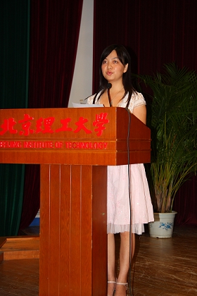 左为07级学生郭占平同学发言,右为08级新生唐嘉宁同学发言