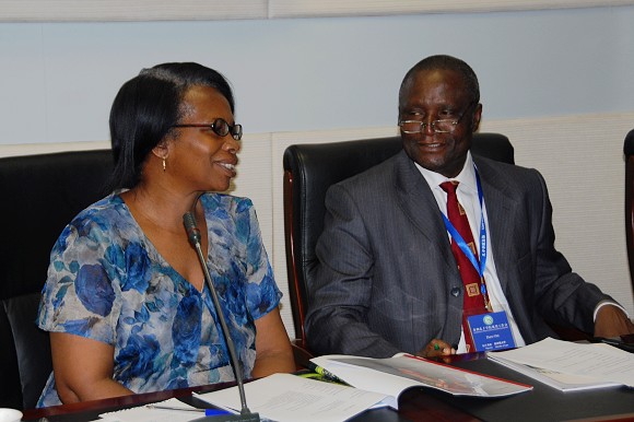 会上,党委副书记侯光明(右)回顾了双方就建立校际合作关系和共同建立孔子学院的商讨过程,希望在此良好的基础上达成两校的实质性合作,并成功开办孔子学院。杨树兴副校长(左)介绍了我校对外交流与合作的情况,尤其是与非洲国家的一流大学在学生交流和校际来往方面的情况,希望借此机会共同推进我校与拉各斯大学等非洲一流院校的交流与合作。