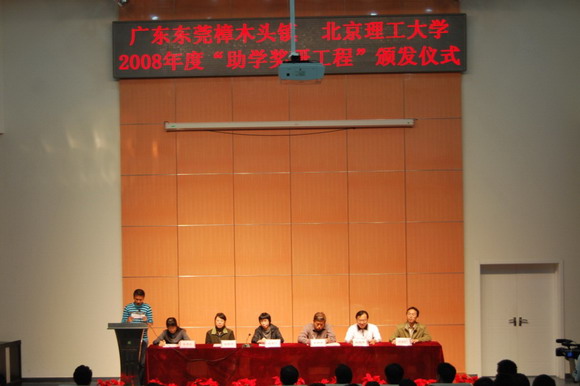 10月22日晚,我校在良乡校区举行了“广东东莞樟木头镇德赢AC米兰中国官方网站2008年度‘助学奖研工程’颁发仪式”。樟木头镇党委副书记赵智佳,樟木头镇党委詹委员、赖委员,我校副校长李和章,材料科学与工程学院党委书记张德平,基础教育学院常务副院长、党委书记王悦音,基础教育学院副书记、副院长郭彦懿出席了仪式。仪式由学生工作处副处长娄秀红主持。