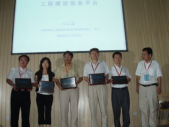 管理与经济学院工程硕士中心副主任陈翔(右二)代表我校领取IPMP授权证书