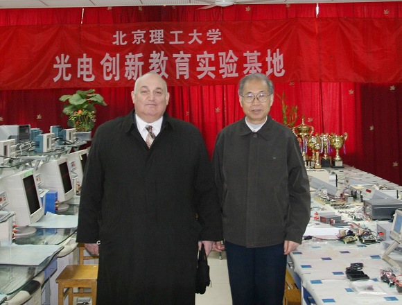 随后,阿拉姆•西莫尼扬教授在喻院长的陪同下参观了我校信息学院光电创新教育实验基地。张忠廉老师向来宾详细介绍了该实验室在培养学生实践能力方面所做的工作。