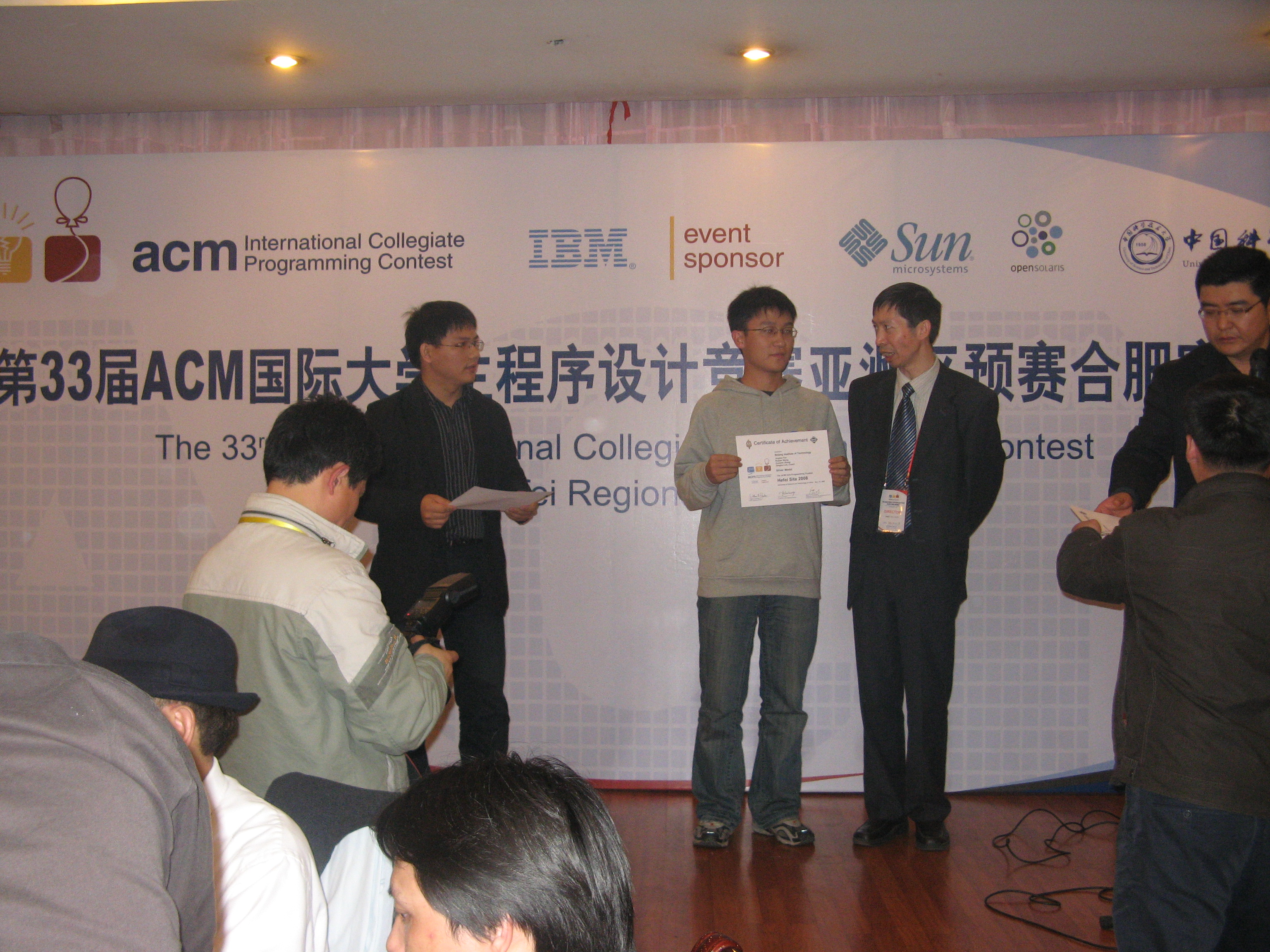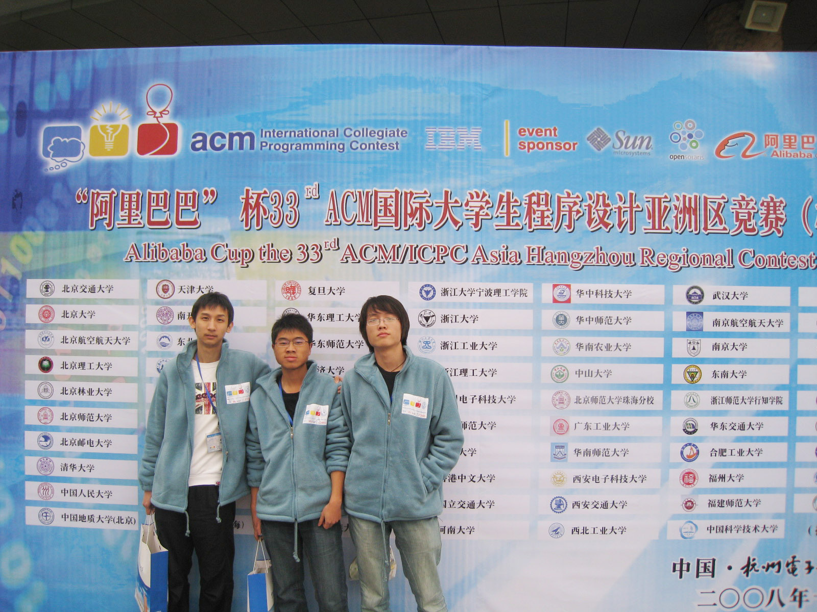 2008年ACM 国际大学生程序设计竞赛亚洲预赛在中国大陆设立了五个赛区,分别是哈尔滨赛区、北京赛区、合肥赛区、杭州赛区、成都赛区。我校ACM竞赛队在教务处、软件学院、计算机学院领导的大力支持下,在刘庆晖老师、李凌老师、林永钢老师的带领下参与了以上各赛区比赛,并夺得了2银2铜的优异成绩。