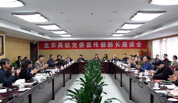 与会北京高校党委宣传部部长围绕着如何深入学校贯彻落实科学发展观,推动高校改革与发展,进一步做好宣传思想文化工作,进行了广泛交流和深入探讨。座谈会由我校党委宣传部部长、新闻中心主任贺亚兰主持。