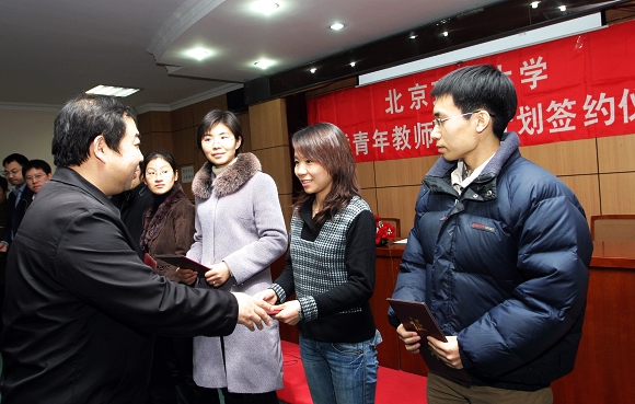人事处赵文祥副处长主持会议,并宣布入选2008年度“优秀青年教师资助计划”和择优二次资助的教师名单。 赵文祥副处长与入选的青年教师代表签订了《优秀青年教师资助计划资助合同书》。