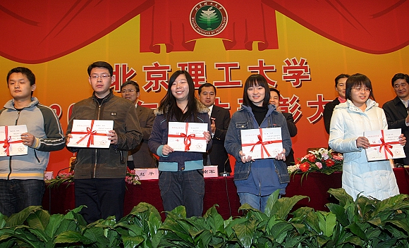 2008年12月16日,我校2008年度学生表彰大会在中心教学楼一层报告厅隆重召开。我校党委副书记、副校长杨宾,党委副书记赵平,副校长赵显利,新宇投资集团有限公司董事长、管理与经济学院兼职教授唐南军、T-more基金会执行理事、首席执行官厉一凡、新宇投资集团有限公司董事长助理王昕昕,新宇投资集团有限公司投资顾问张斌,我校学校办公室主任姚利民、党委宣传部部长贺亚兰、研究生工作部部长肖文英、校友办公室主任杨晖、校团委书记徐强、学生工作处处长刘明奇、教务处副处长韩宝玲以及各学院主管学生工作的副书记、副院长出席了会议,500余名获奖学生代表参加了表彰大会。大会由学生工作部高阳特同志主持。杨宾宣读了“2007-2008学年国家奖学金、国家励志奖学金获得者名单”,赵平宣读了“2007-2008学年徐特立奖学金、T-more 创新学生奖等社会捐助奖学金获得者名单”,刘明奇宣读了“2008年度学科知识竞赛获奖学生名单”,赵显利宣读了“关于表彰2007-2008学年优秀学生标兵、优秀学生、优秀学生干部、先进班集体、优良学风班和优良学风宿舍的决定”。大会举行了隆重的颁奖仪式,与会领导向获奖学生代表颁发了奖状、奖牌、证书和奖品。 今年有15个先进班集体、21个优良学风班、87个优良学风宿舍、95名优秀学生标兵、860名优秀学生、222名优秀学生干部、189名国家奖学金获得者、450名国家励志奖学金获得者、2182名国家助学金获得者、426名社会捐助奖学金获得者、458名社会助学金获得者受到表彰。