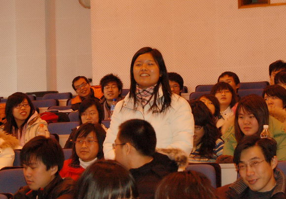 在交流互动环节中,金教授逐一回答了同学们提出的有关钓鱼岛问题、东海问题,以及中、日教育比较等问题。