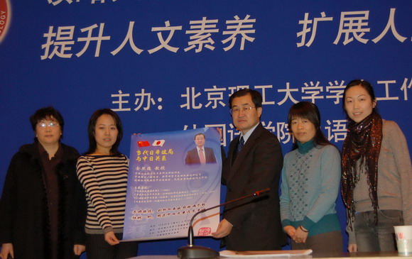 2008年12月21日“聆听智慧”名家论坛第32期在七号楼报告厅举行,中国社会科学院日本研究所副所长金熙德教授为我校师生作了题为“当代日本政局与中日关系”的专题讲座。外国语学院副院长兼日语系主任谭利群、学生工作部副部长娄秀红、日语系副主任李建华,以及日语系外教野村良男出席了本次讲座。300余名师生到现场聆听了金教授的演讲。